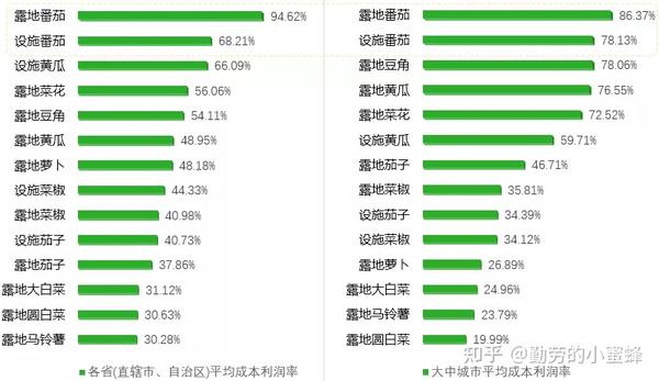 报告原文:《农小蜂:中国蔬菜十大品种成本收益数据分析(一)- 成本利润率》