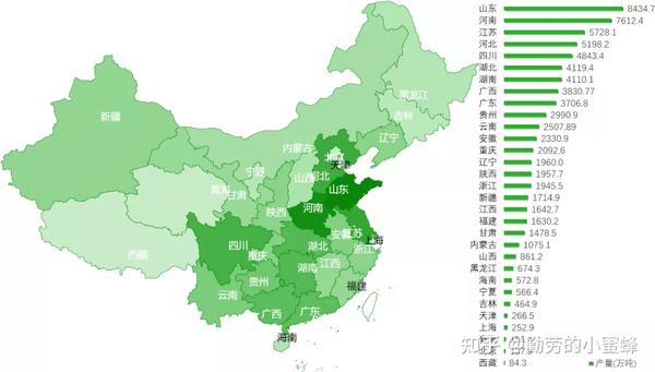 山东省以8434.7万吨位列全国第一,在全国蔬菜总产量74912.9万吨中比重达11.26%;
